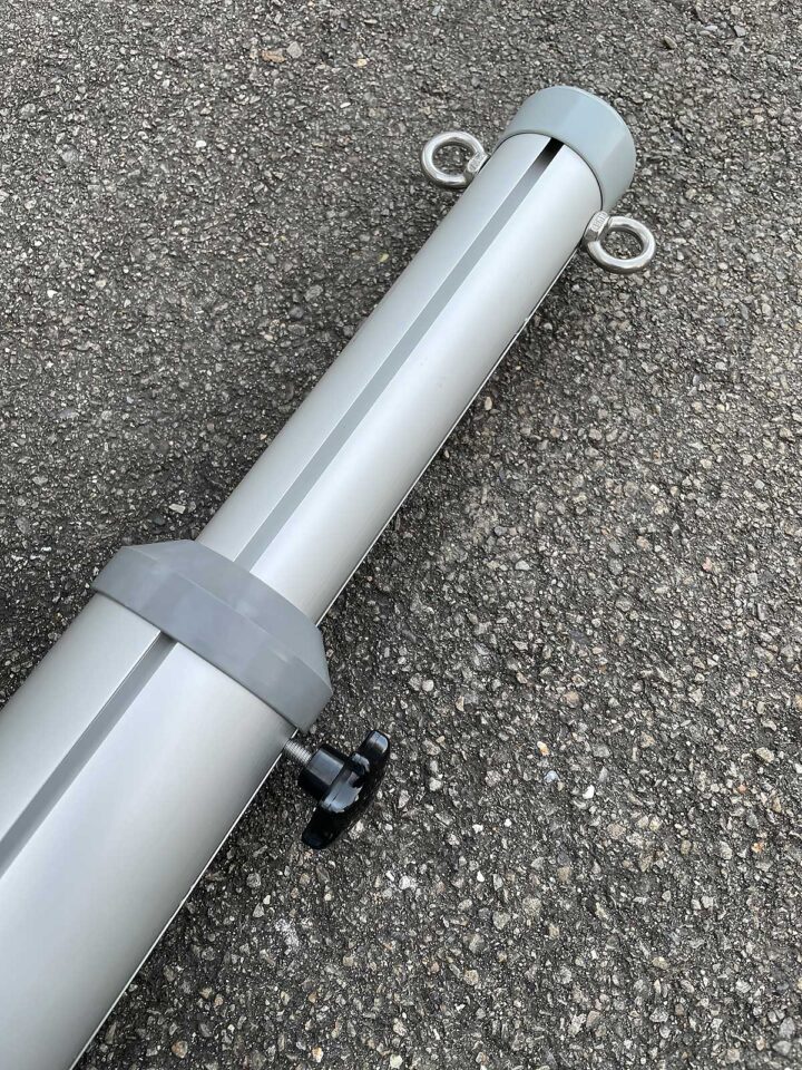 Der Aluminium-Teleskopmast dient als Befestigungspunkt von festverspannten oder aufrollbaren Sonnensegel und auch als Befestigungspunkt von Wind- und Sichtschutz.
