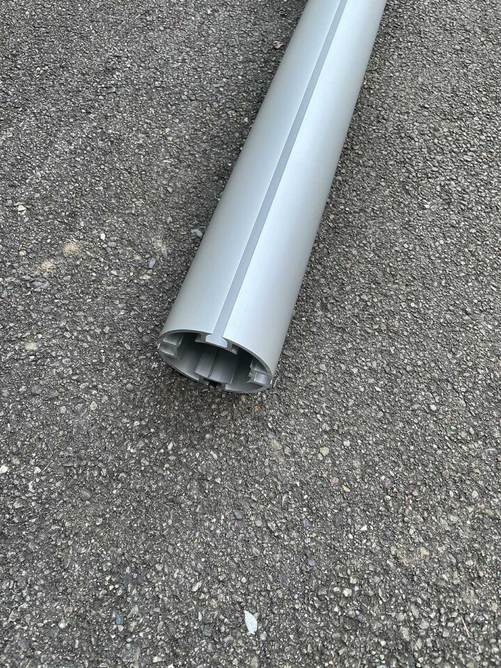 - 2-teiliger Teleskopmast aus silbermatt eloxiertem Aluminium mit vier Längsnuten