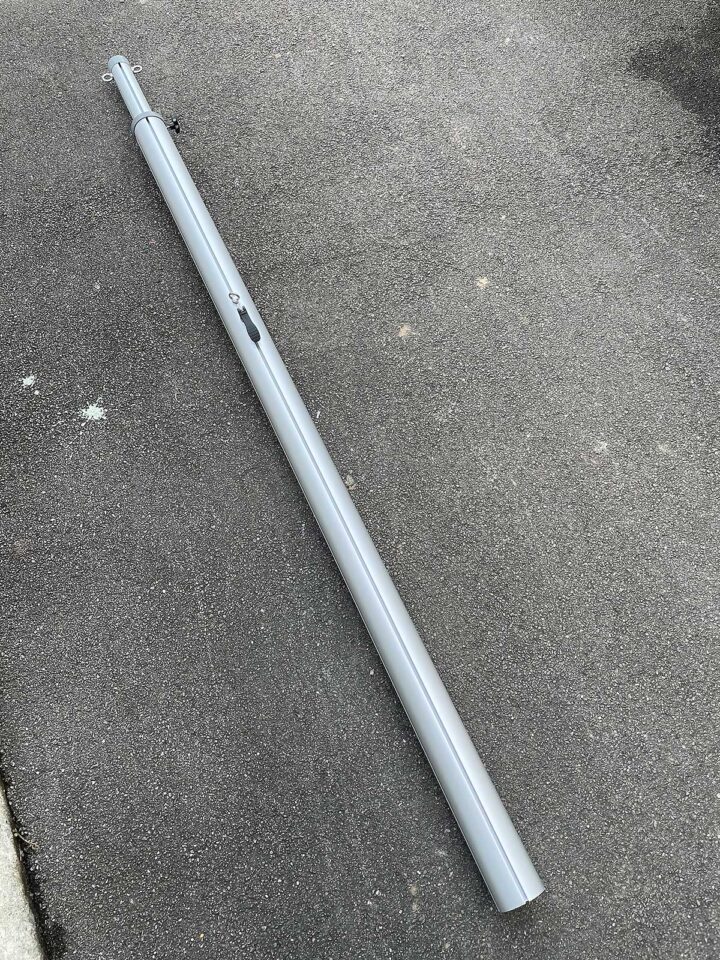 Das Aussenprofil hat einen Durchmesser von 78mm, das Innenprofil von 50mm. Die Wandstärke beträgt jeweils 3mm und eignet sich auch für höhere Belastung im Aussenbereich in Verbindung mit einer Mast-Abspannung an der Ringschraube.