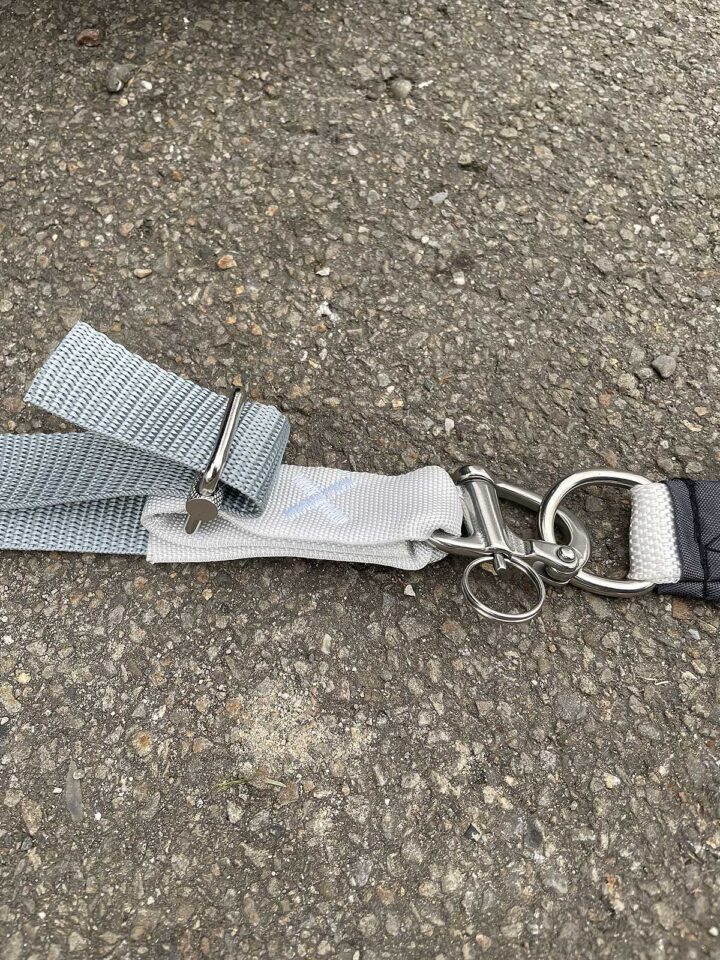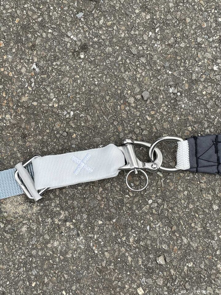 Zwischen Sicherheits-Schnappschäkel und Gurtschnalle ist das Gurtband doppelt verstärkt, um die Zugkräfte standzuhalten.