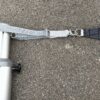 Als nächstes zieht man das durchgefädelte Ende entlang des Gurtbandes zu der Gurtschnalle und führt es unter dem Steg, direkt am Gewebe durch.