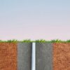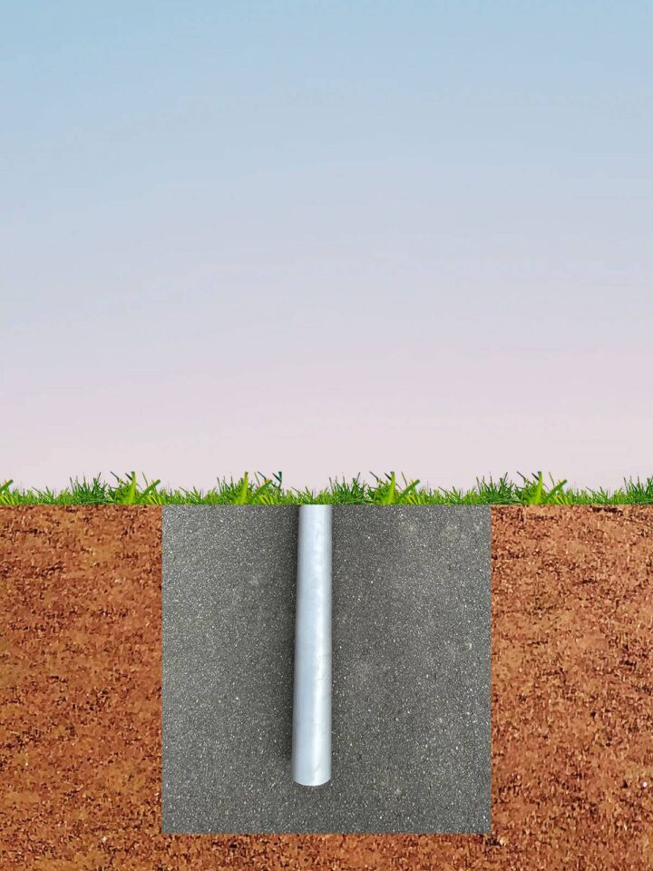 Die Oberkante der Bodenhülse ist mit 10° Neigung abgeschrägt. In diesem Winkel sollte die Hülse im Boden befestigt werden. Die Bodenhülse ist rund 60cm lang. Noch etwas tiefer muss also das Loch sein, in das die Bodenhülse eingegossen wird.
