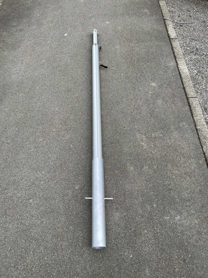 In der Lieferung enthalten sind Bodenhülse, Befestigungsring, Verstellrad und integrierte Höhenverstellung von 200cm auf 350cm.