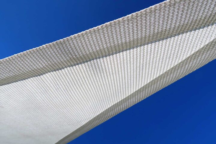Das Gewirke besteht zu 100% aus hochwertigem HDPE (Hart-Polyethylen). Es ist wind- und luftdurchlässig und verhindert dadurch jegliche Hitzestaubildung unter dem Sonnensegel. Das Trapez-Sonnensegelnetz lässt bis zu 15% des Windes durch und entschärft dadurch sogenannte Windlasten.